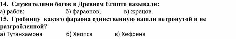 15. Гробницу какого фараона единственную нашли нетронутой и не разграбленной?