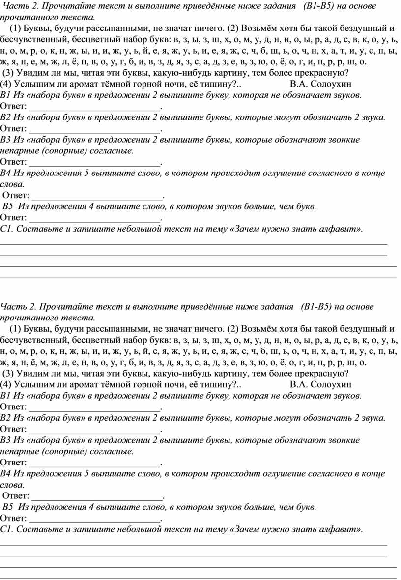 Часть 2. Прочитайте текст и выполните приведённые ниже задания (В1-В5) на основе прочитанного текста.