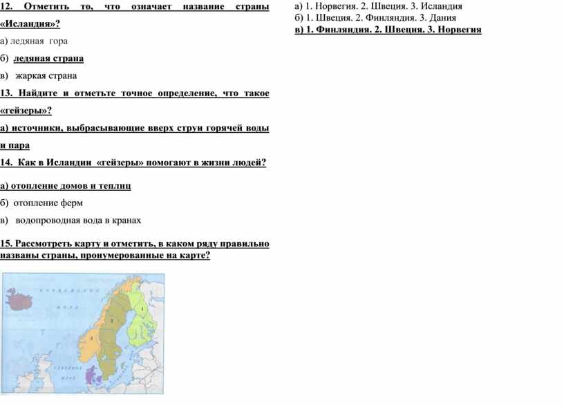 а) 1. Норвегия. 2. Швеция. 3. Исландия