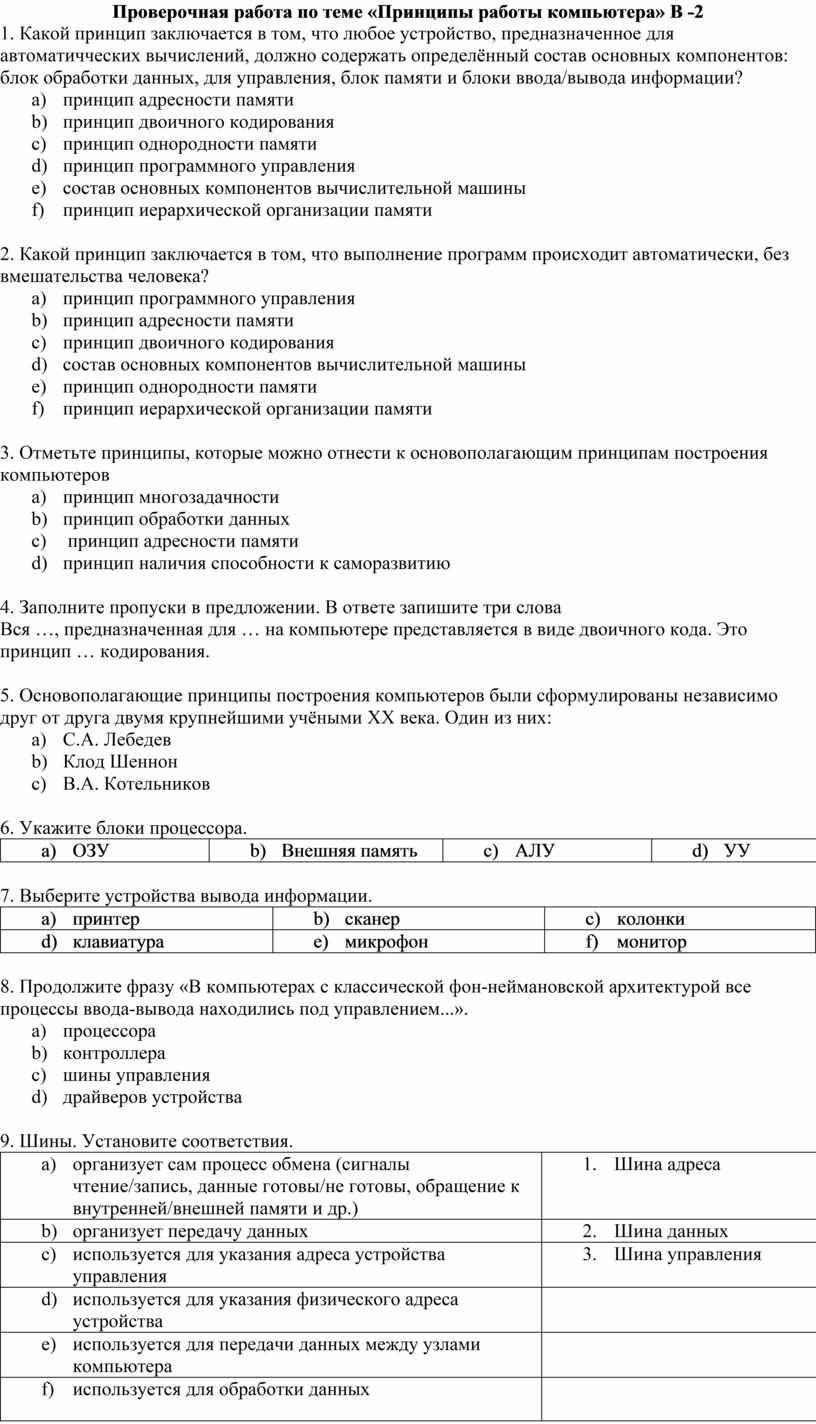 Проверочная работа по теме «Принципы работы компьютера» В -2
