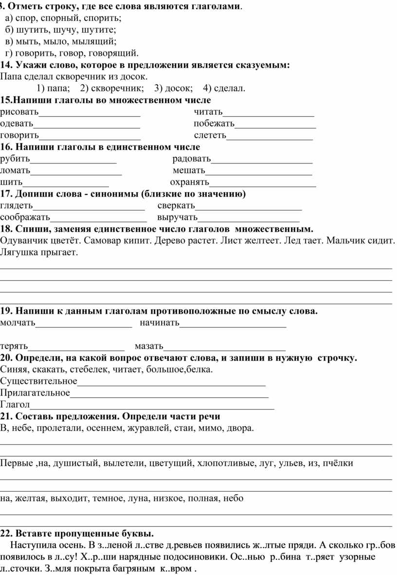 12. Укажи строчку, в которой глаголы стоят в единственном числе: