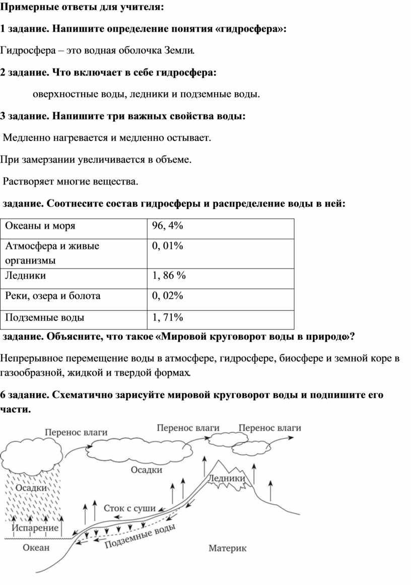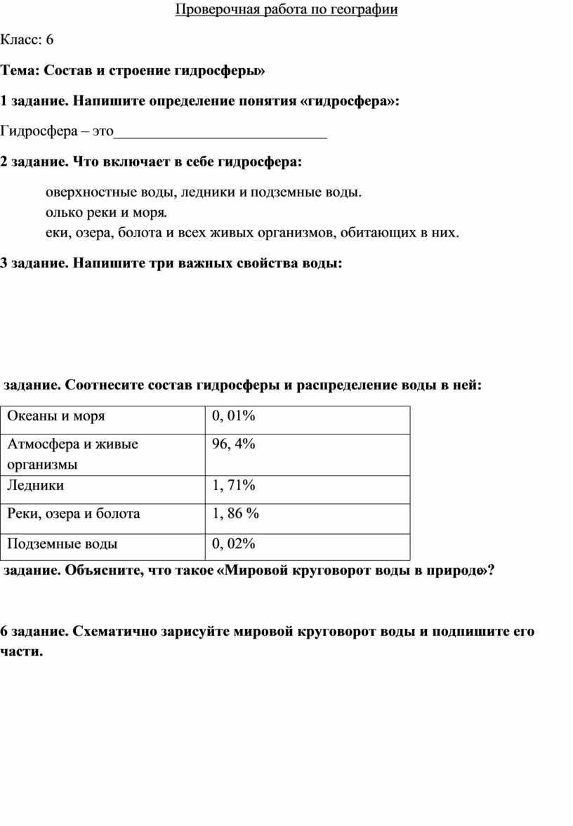2 задание. Что включает в себе гидросфера:
