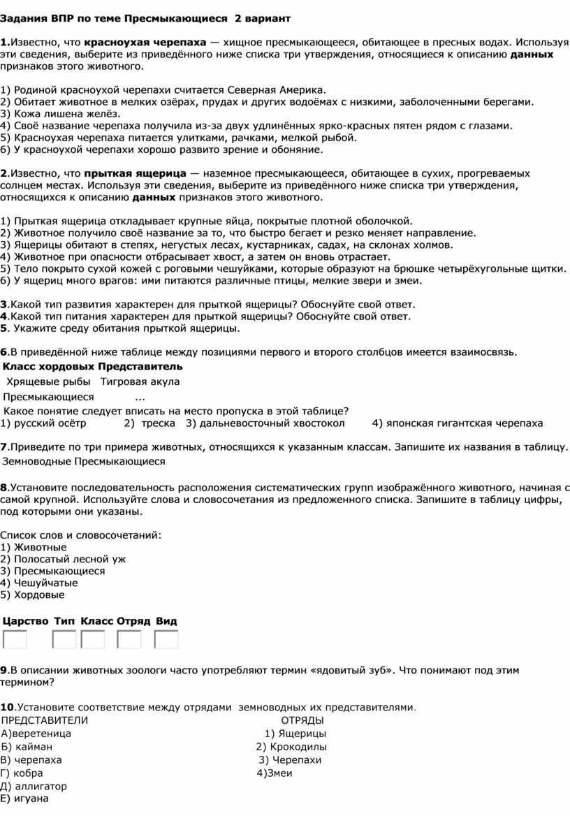 Задания ВПР по теме Пресмыкающиеся 2 вариант