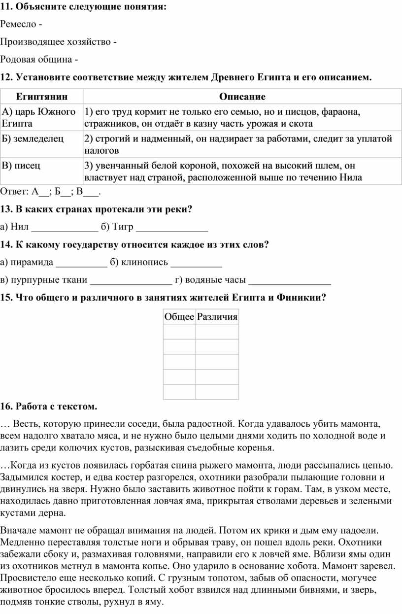 15. Что общего и различного в занятиях жителей Египта и Финикии?