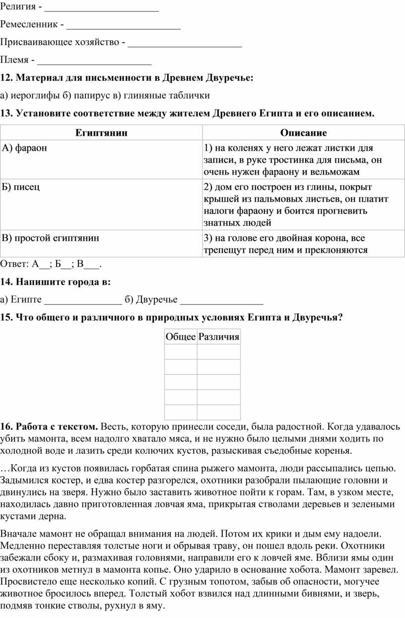 15. Что общего и различного в природных условиях Египта и Двуречья?