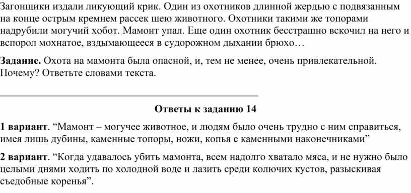 Задание. Охота на мамонта была опасной, и, тем не менее, очень привлекательной. Почему? Ответьте словами текста.