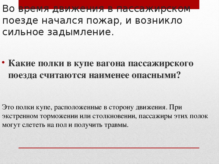 • сообщить о пожаре проводнику и разбудить спящих пассажиров;