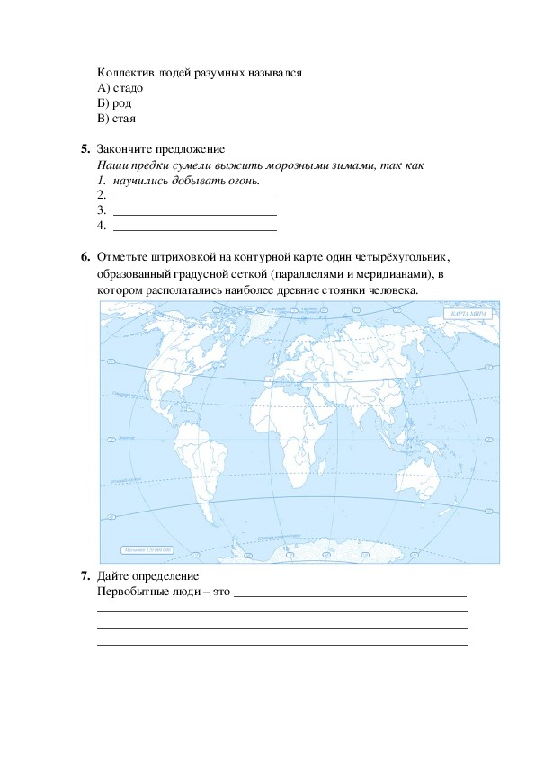 ___________________________________________________________Проверочная работа по теме «Первобытные собиратели и
