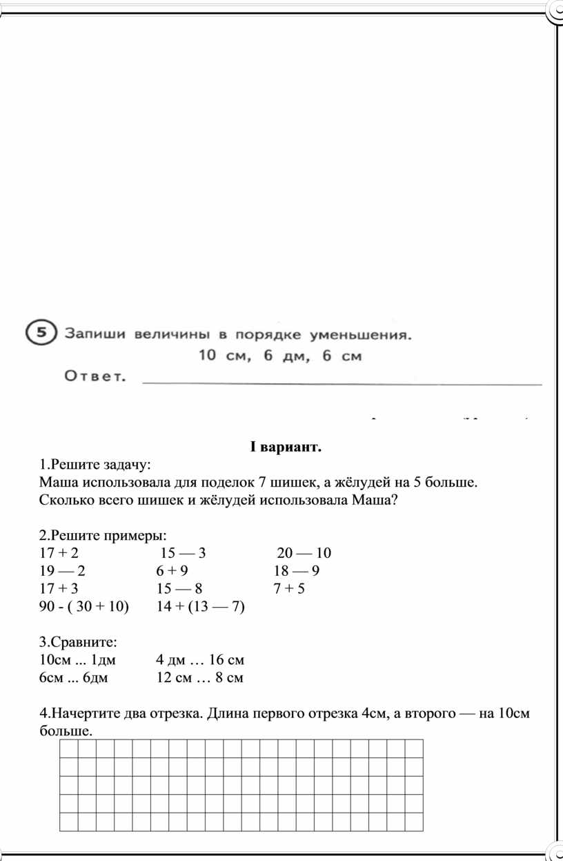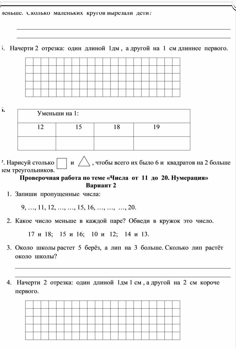 10. Проверочная работа по теме «Числа от 11 до 20. Нумерация»..29-30 стр.