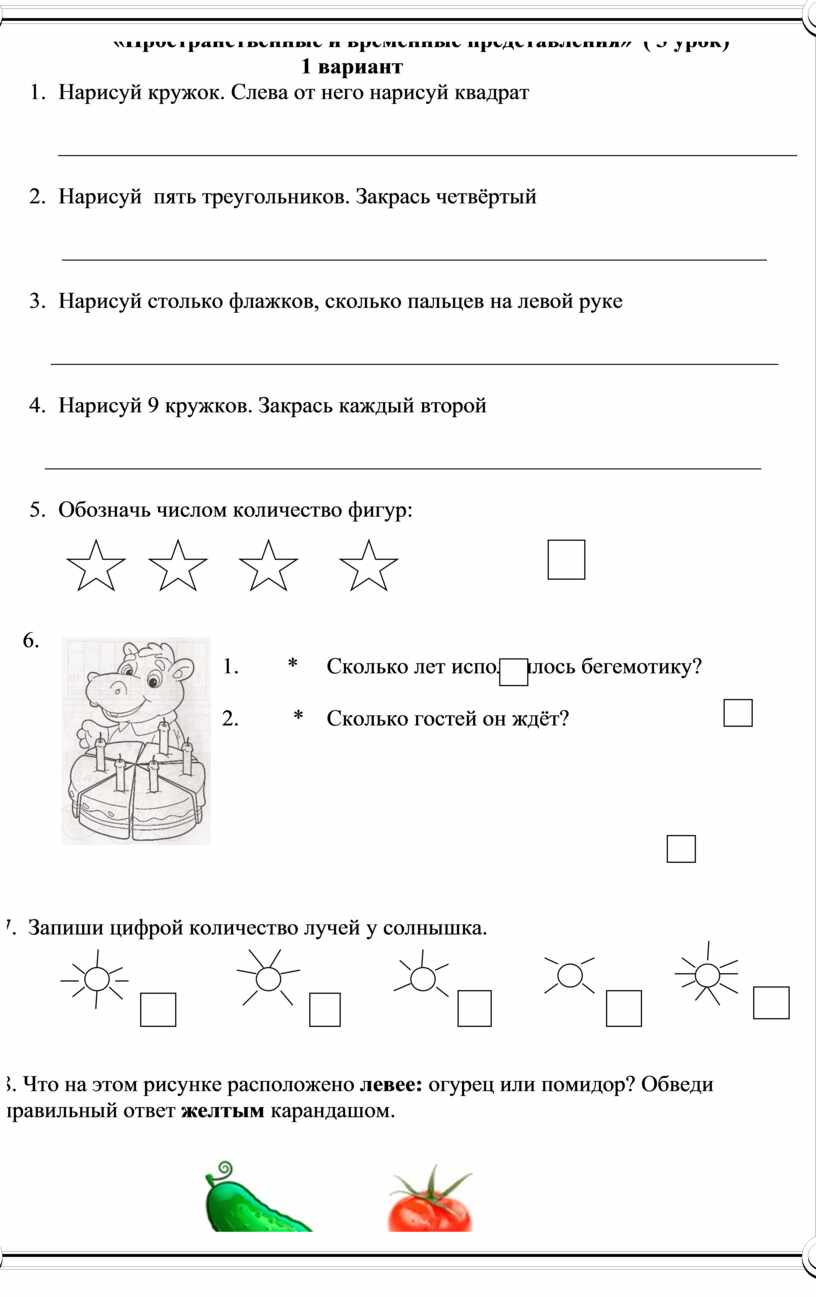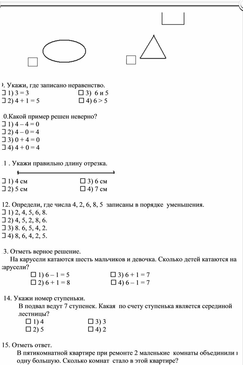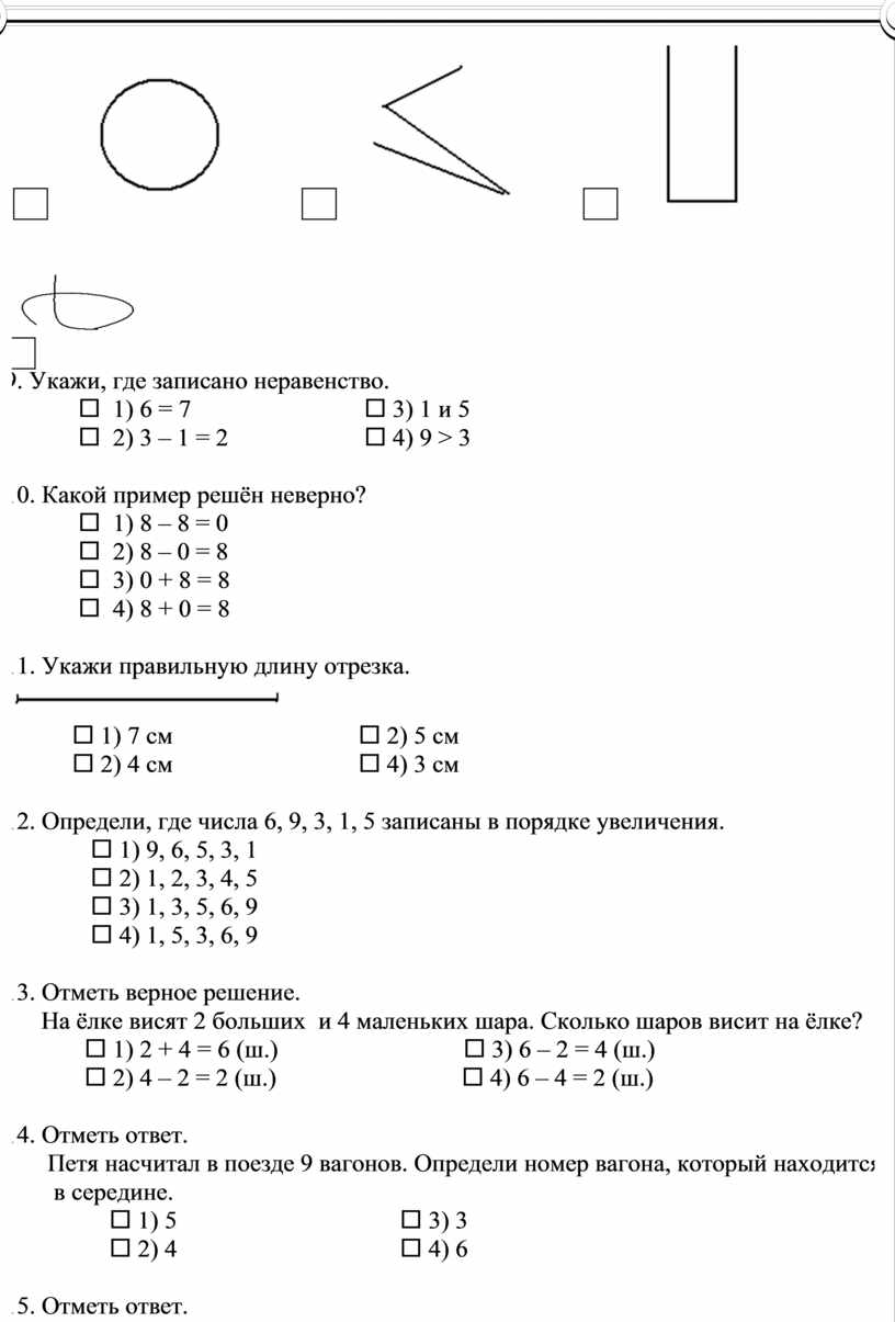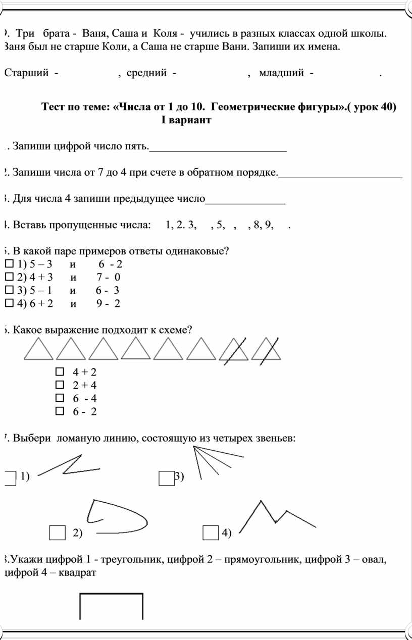 Тест по теме: «Числа от 1 до 10. Геометрические фигуры»