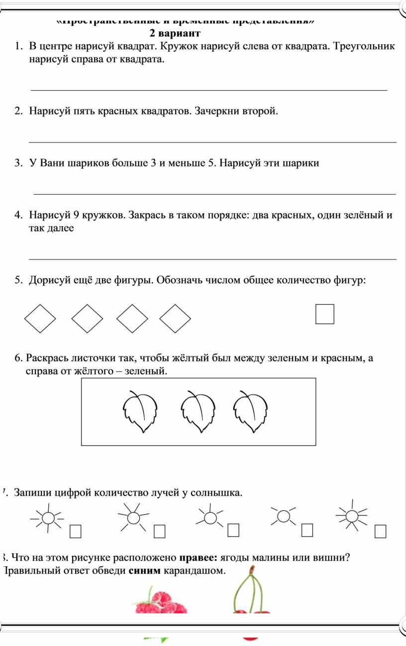 рисунке расположено правее: ягоды малины или вишни? Правильный ответ