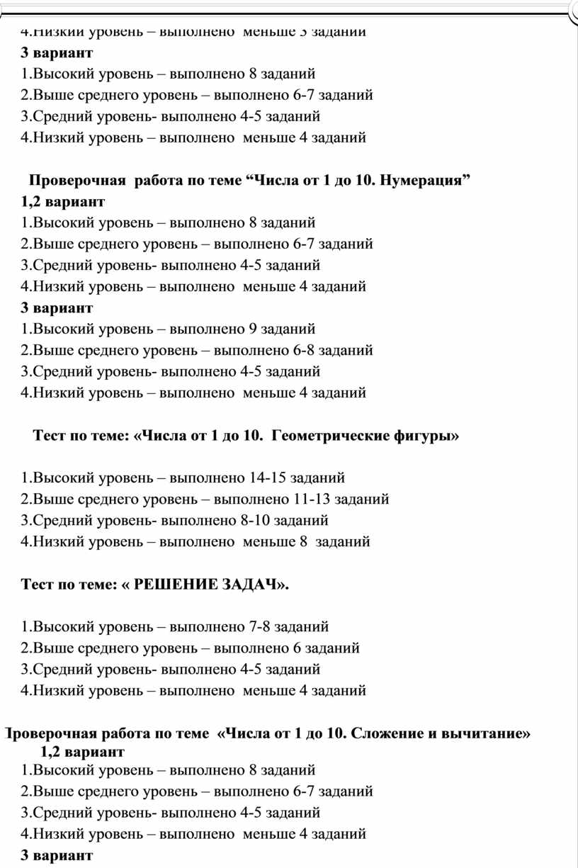 4. Проверочная работа по теме “Числа от 1 до 10. Нумерация”......12-14 стр.