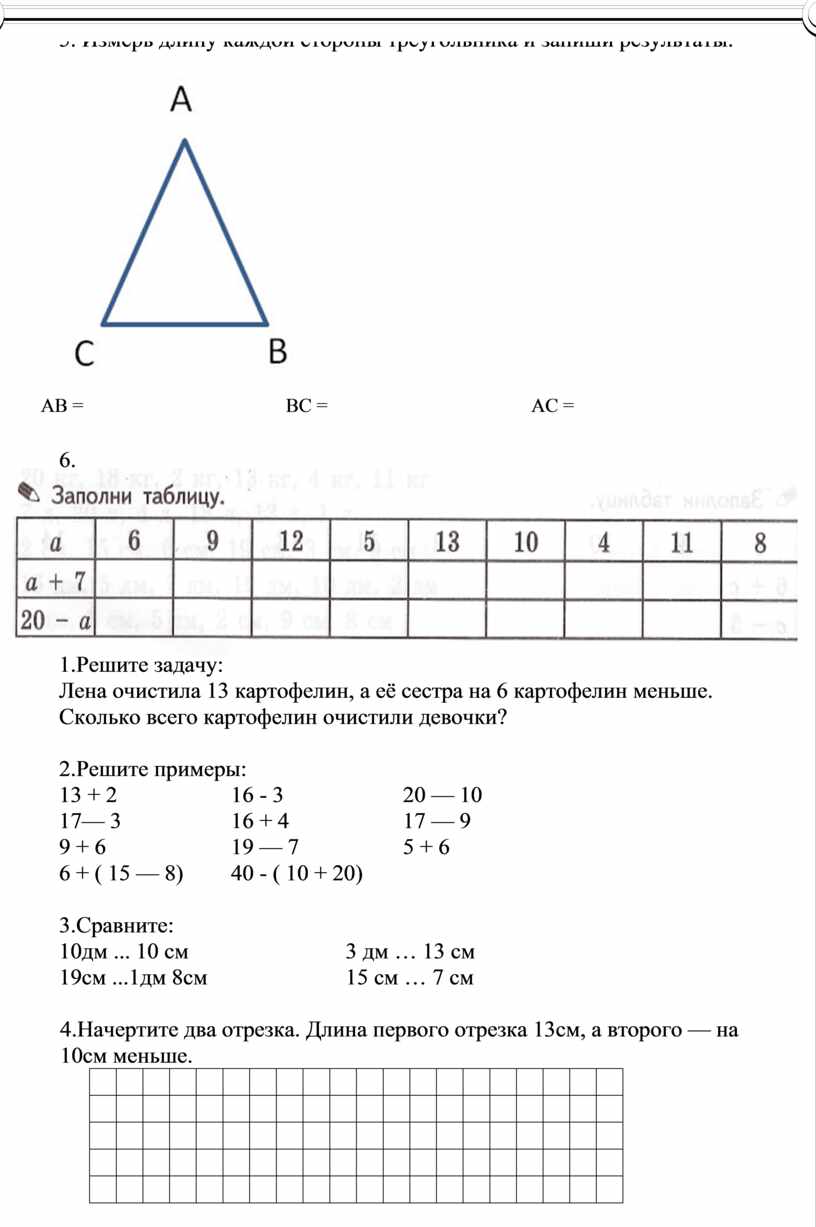6. Начерти отрезок длиной 1дм 6 см. Поставь точку так, чтобы получилось два одинаковых отрезка.
