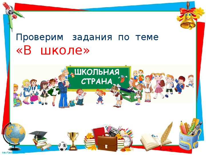 Презентация содержит 10 проверочных заданий со слайдами для проверки выполненного при изучении темы "В школе" по разделу "Общение" по учебнику А. А. Плешакова по УМК "Школа России". Данный ресурс может быть тиражирован для индивидуальной самостоятельной работы обучающихся в домашних условиях.Презентация к уроку окружающего мира во 2 классе по УМК "Школа России"