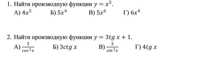 Проверочный тест по теме «Производная»