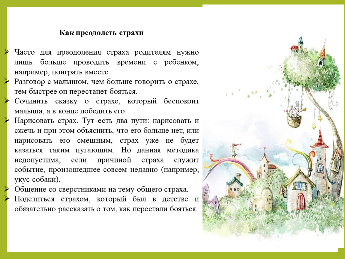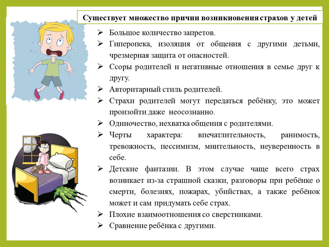 Детские фантазии. В этом случае чаще всего страх возникает из-за страшной сказки, разговоры при ребёнке о смерти, болезнях, пожарах, убийствах, а также ребёнок может и сам придумать себе страх.