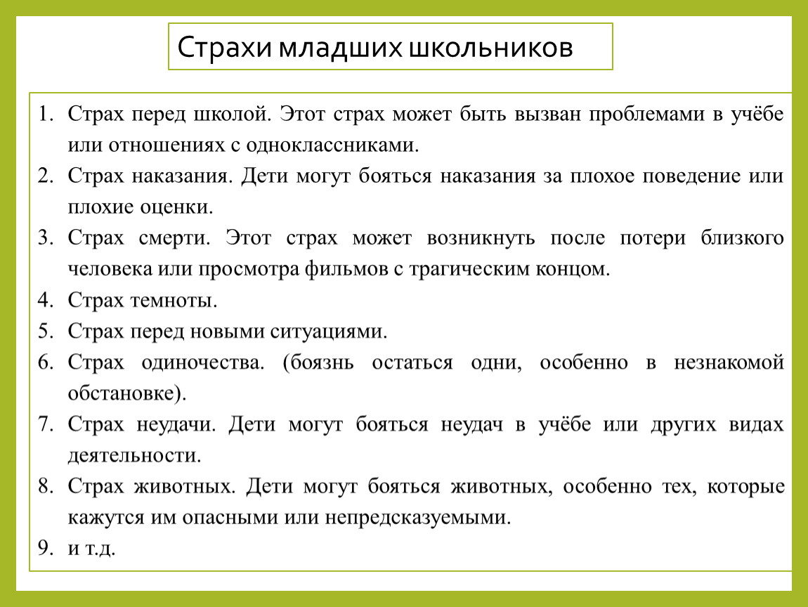 Страх неудачи. Дети могут бояться неудач в учёбе или других видах деятельности.