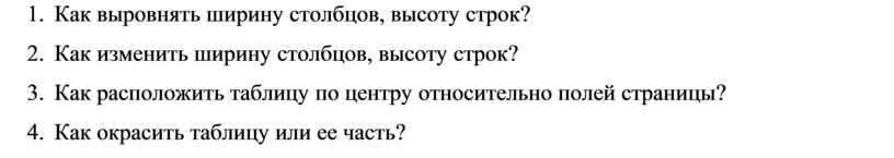6. Как выровнять ширину столбцов, высоту строк?