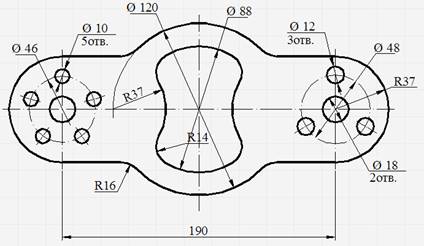5.     Выполнить чертеж по заданным размерам в масштабе 1:1 в соответствии с полученным заданием (см. пример выполнения практической работы №23).