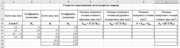 Задание №4. Рассчитать скорость перемещения дуги (скорость сварки) швов стыковых соединений и сохранить документ под именем «Excel 4».