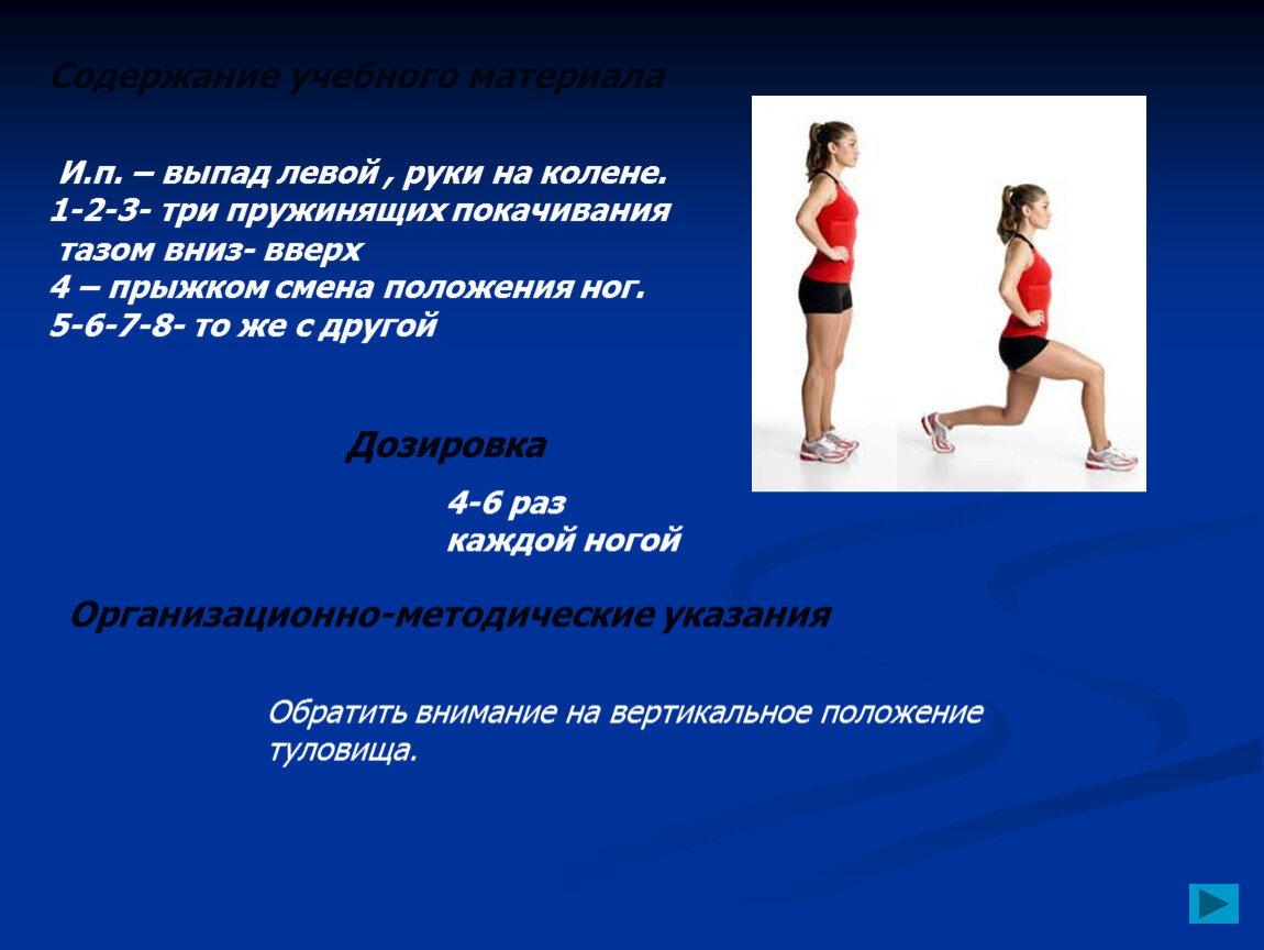 Выполнять под счёт учителя. Обратить внимание на сохранение правильной осанки.