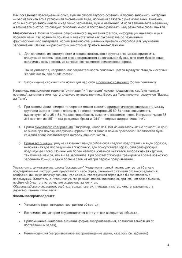 запоминания. Сейчас мы рассмотрим некоторые приемы мнемотехники.