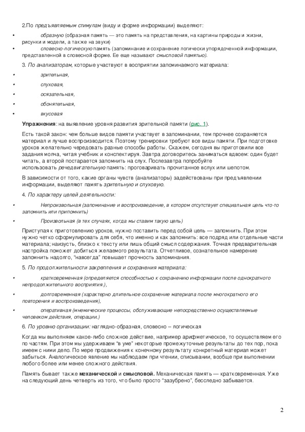1. Познакомить учащихся с видами памяти и механизмами запоминания.