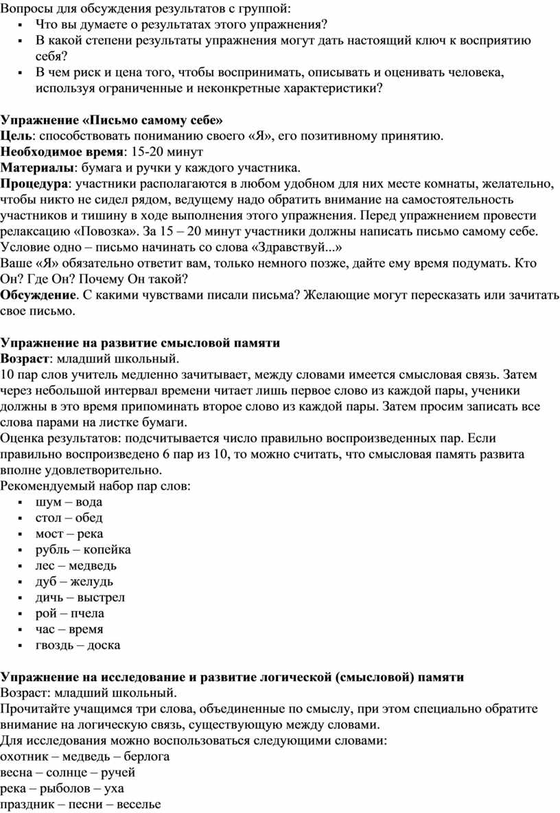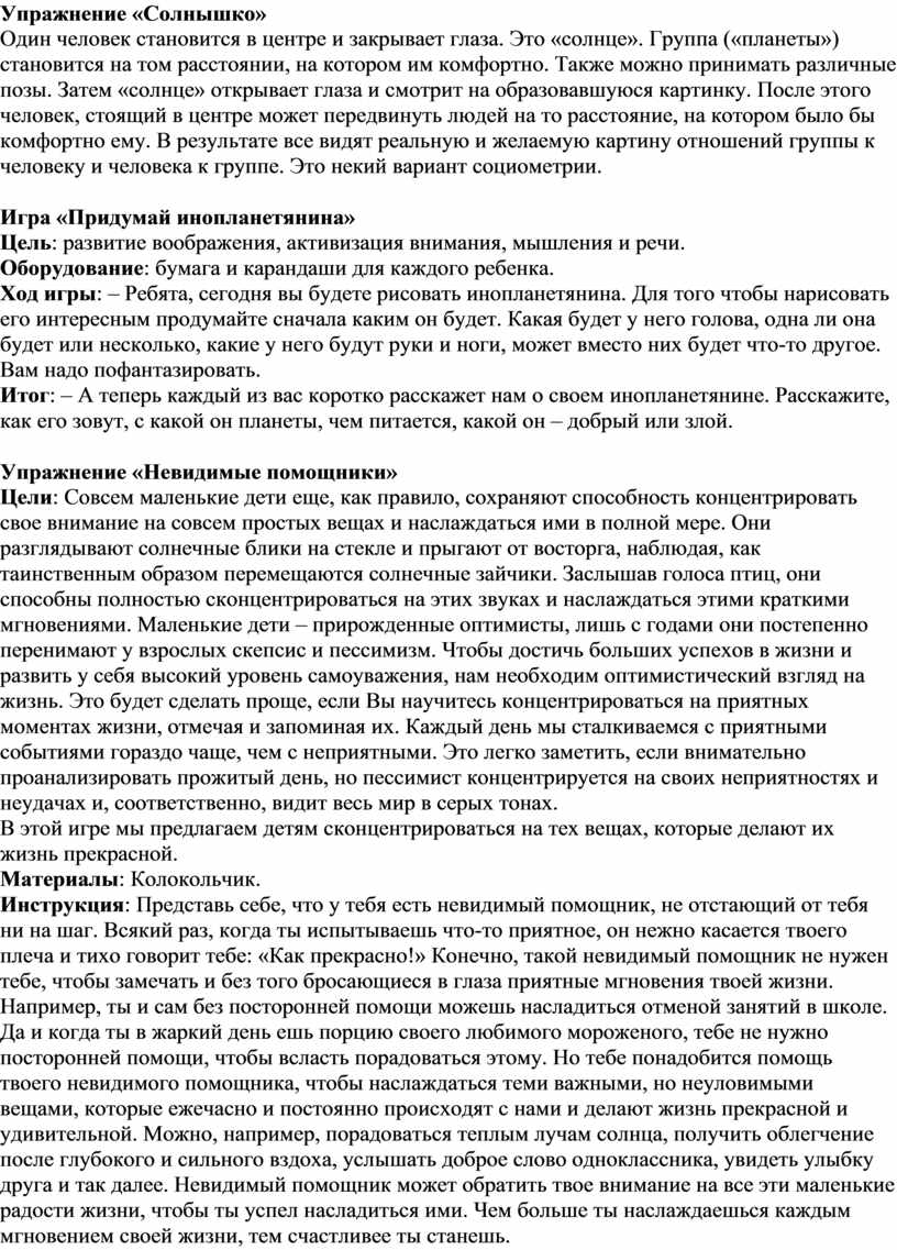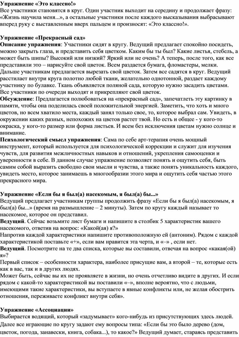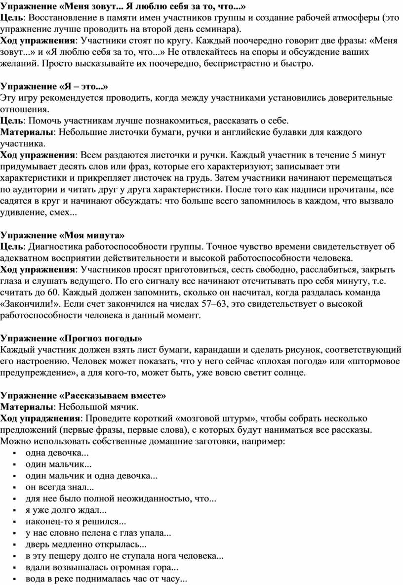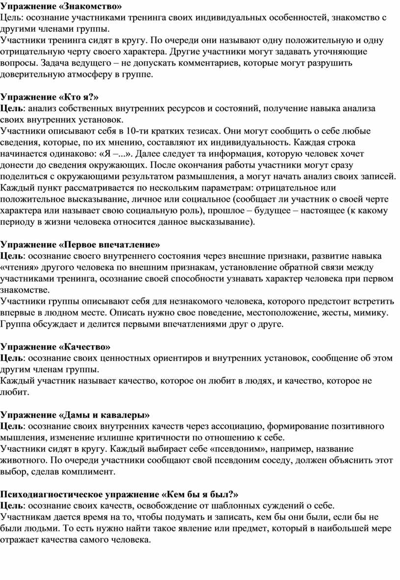 Цель упражнения: помочь участникам выстраивать адекватную самооценку.