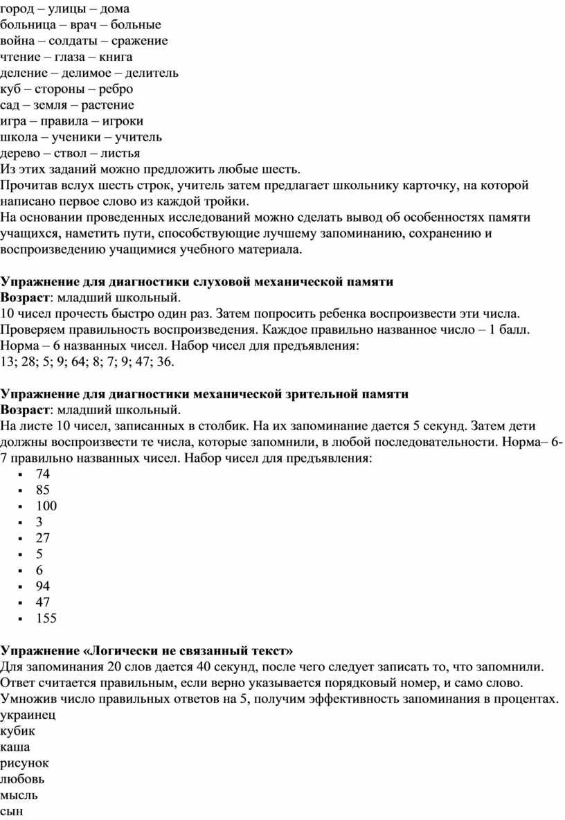 Упражнение для диагностики слуховой механической памяти