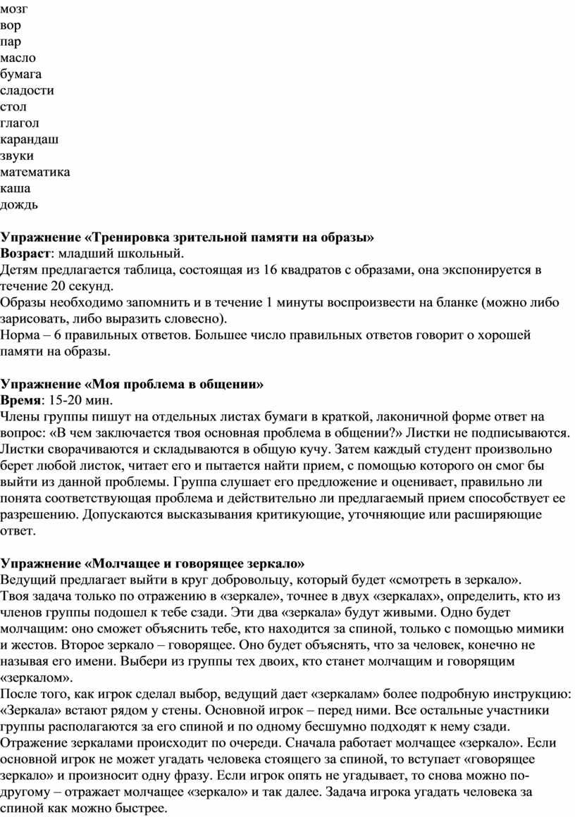 Упражнение «Тренировка зрительной памяти на образы»