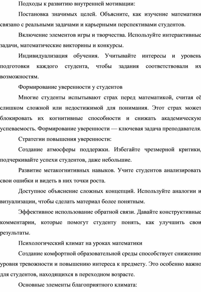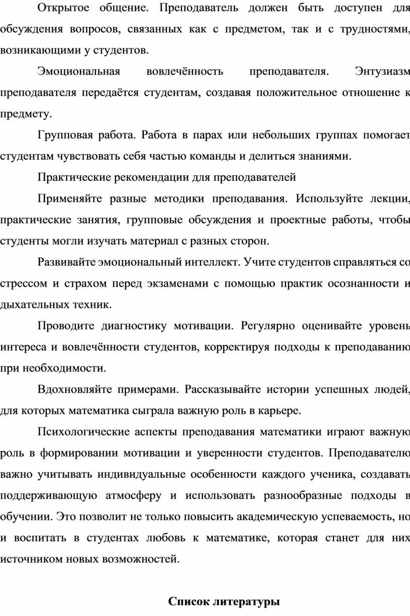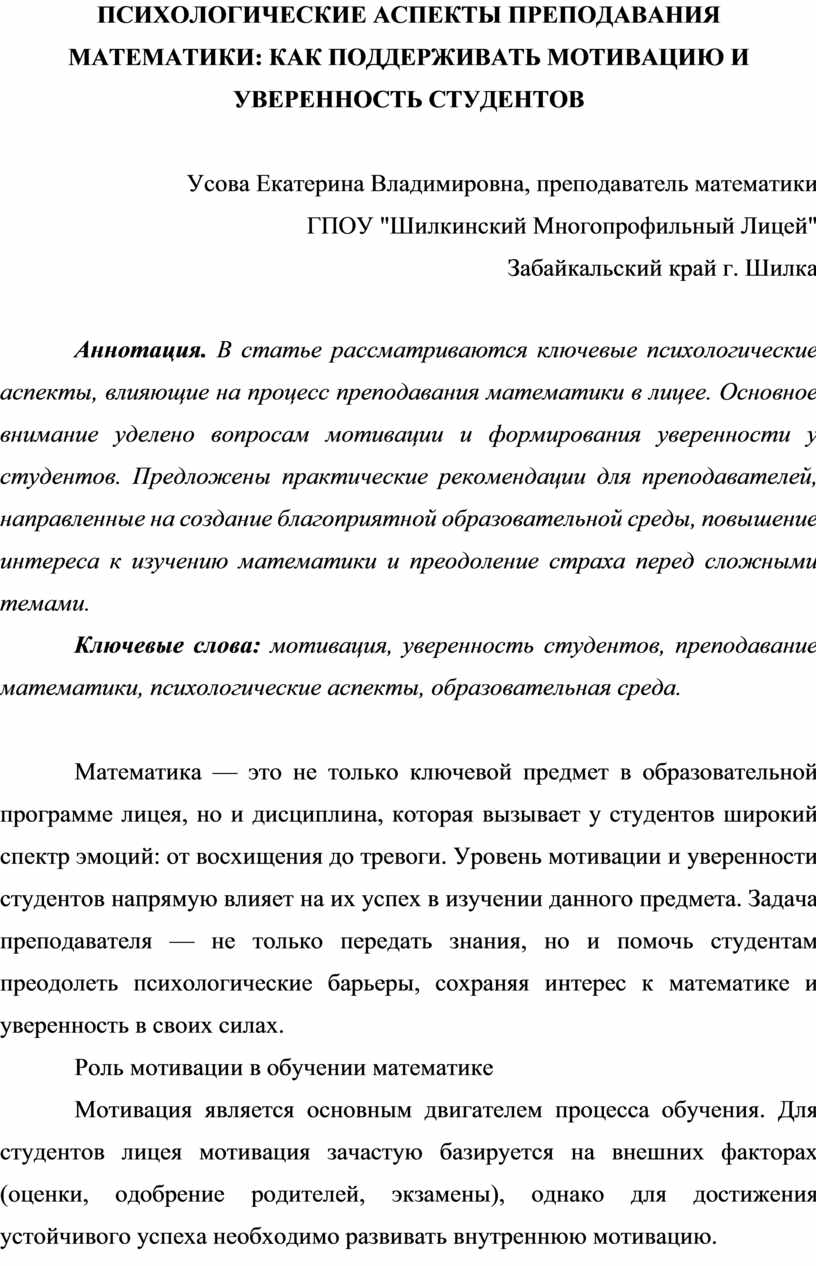ПСИХОЛОГИЧЕСКИЕ АСПЕКТЫ ПРЕПОДАВАНИЯ МАТЕМАТИКИ: КАК ПОДДЕРЖИВАТЬ МОТИВАЦИЮ И УВЕРЕННОСТЬ СТУДЕНТОВ