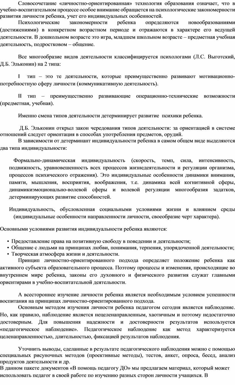 Словосочетание «личностно-ориентированная» технология образования означает, что в учебно-воспитательном процессе особое внимание обращается на психологические закономерности развития личности ребенка, учет его индивидуальных особенностей.