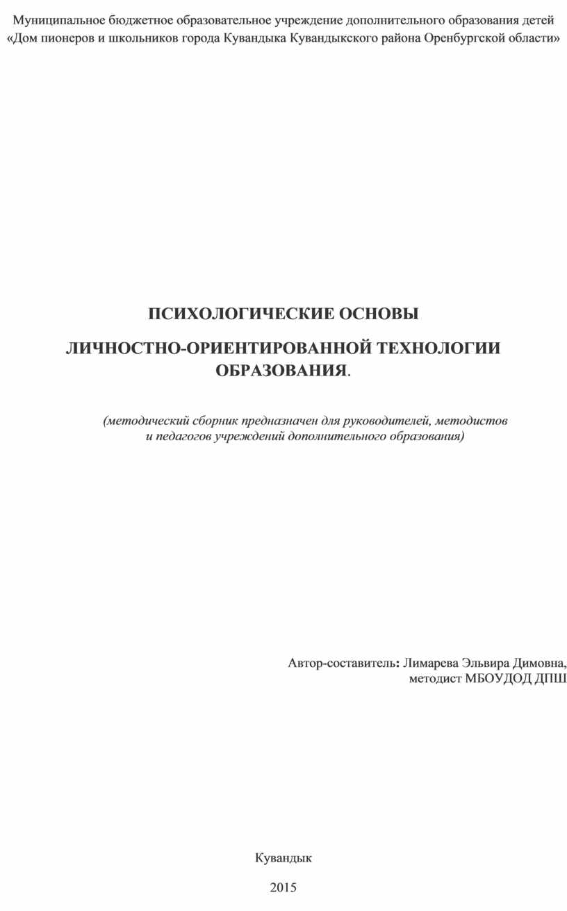 ЛИЧНОСТНО-ОРИЕНТИРОВАННОЙ ТЕХНОЛОГИИ ОБРАЗОВАНИЯ.
