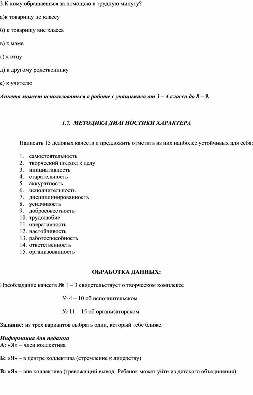 2.7. МЕТОДИКА ДИАГНОСТИКИ ХАРАКТЕРА