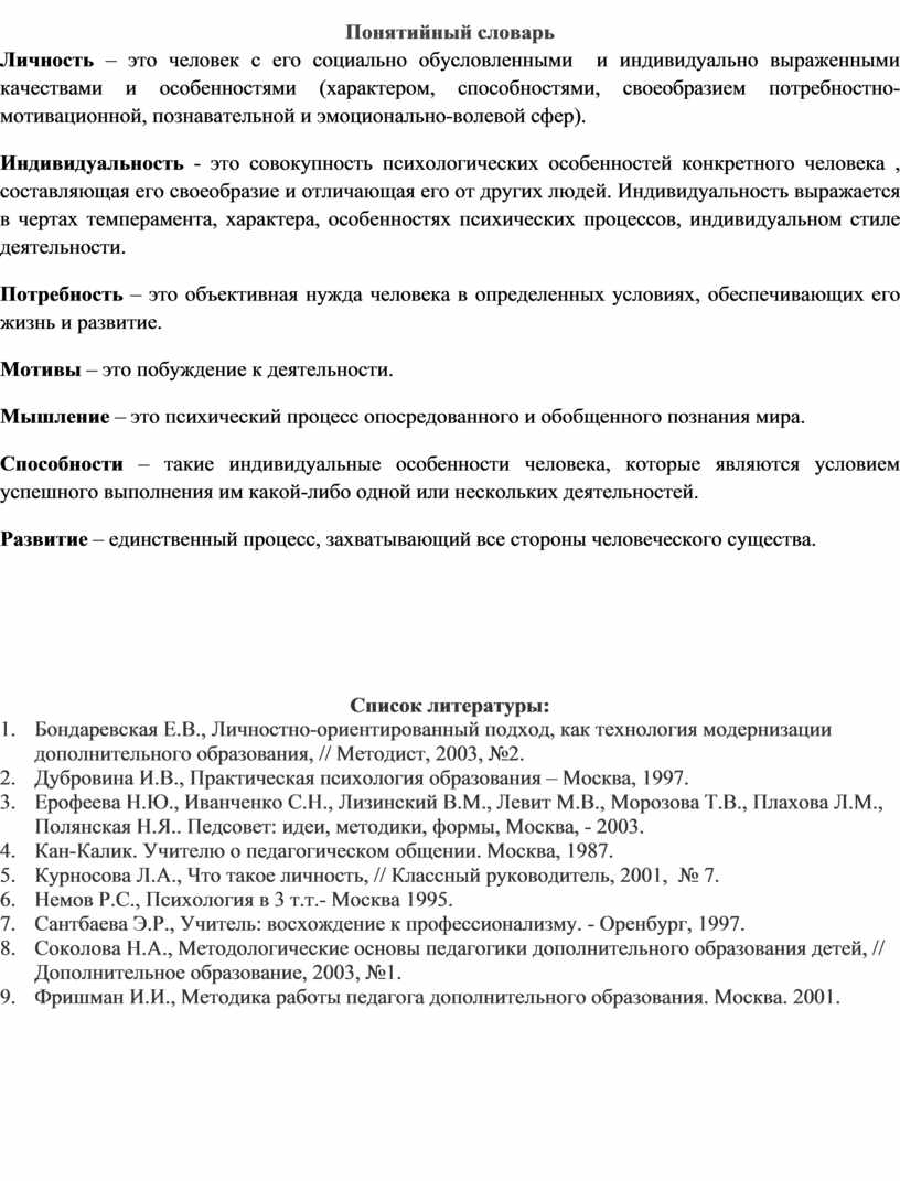 1. Бондаревская Е.В., Личностно-ориентированный подход, как технология модернизации дополнительного образования, // Методист, 2003, №2.