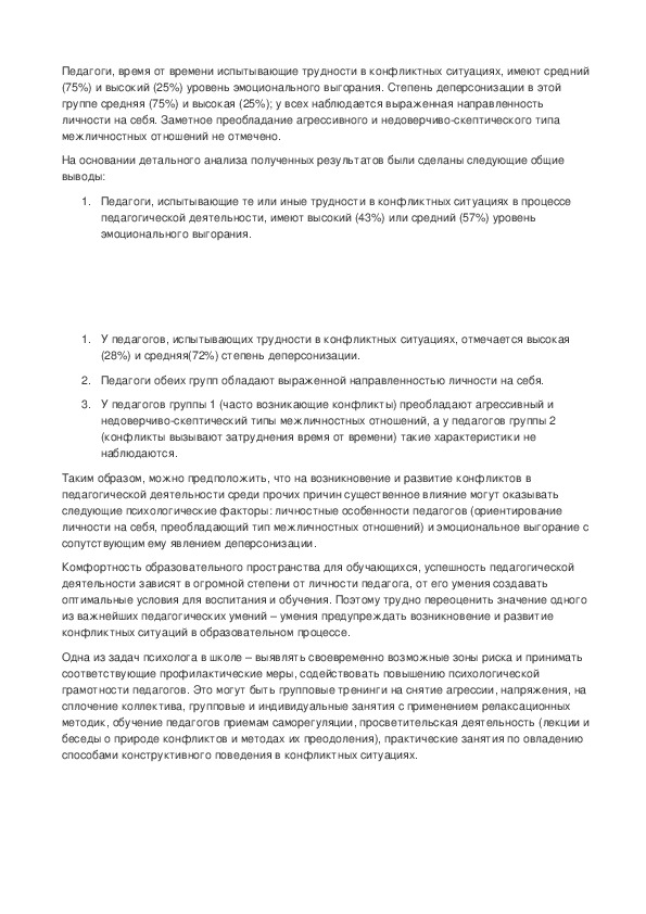 1. У педагогов, испытывающих трудности в конфликтных ситуациях, отмечается высокая