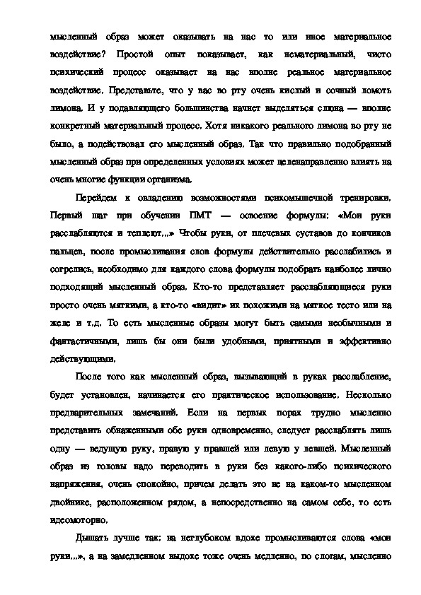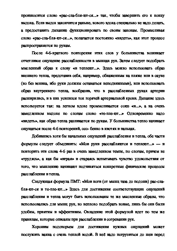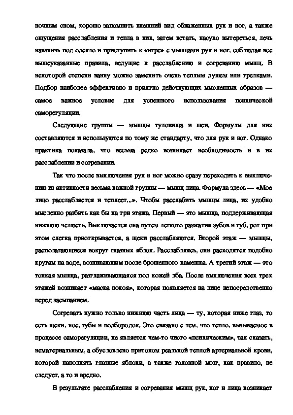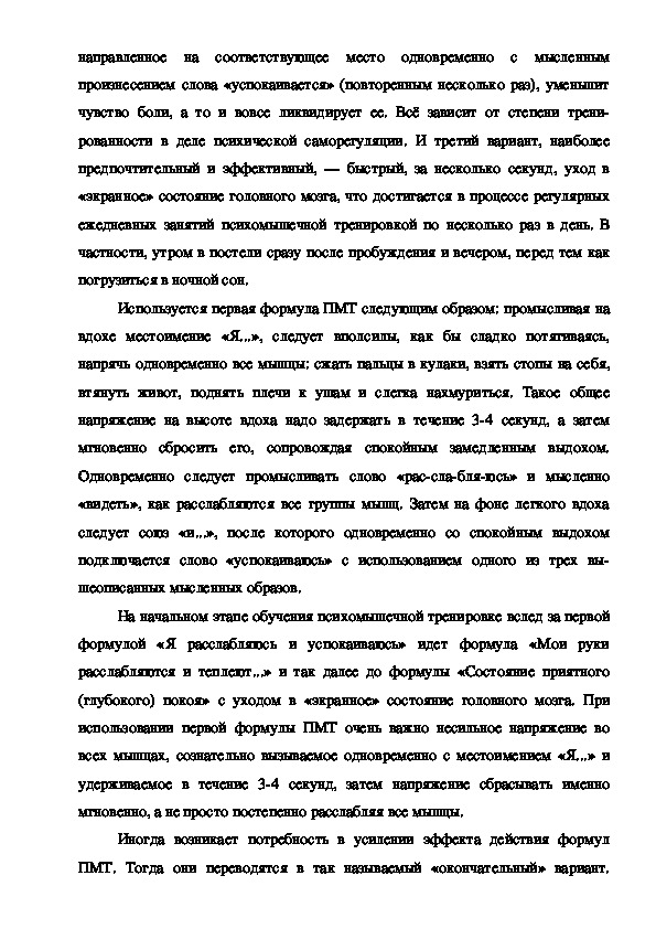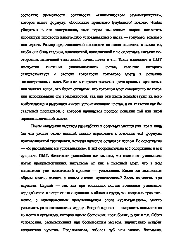 Существует немало различных вариантов аутотренинга. Далее будет