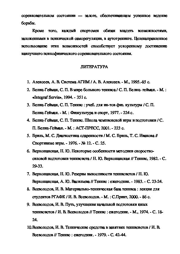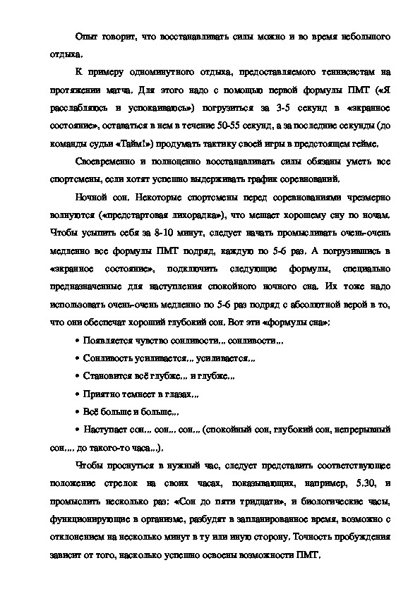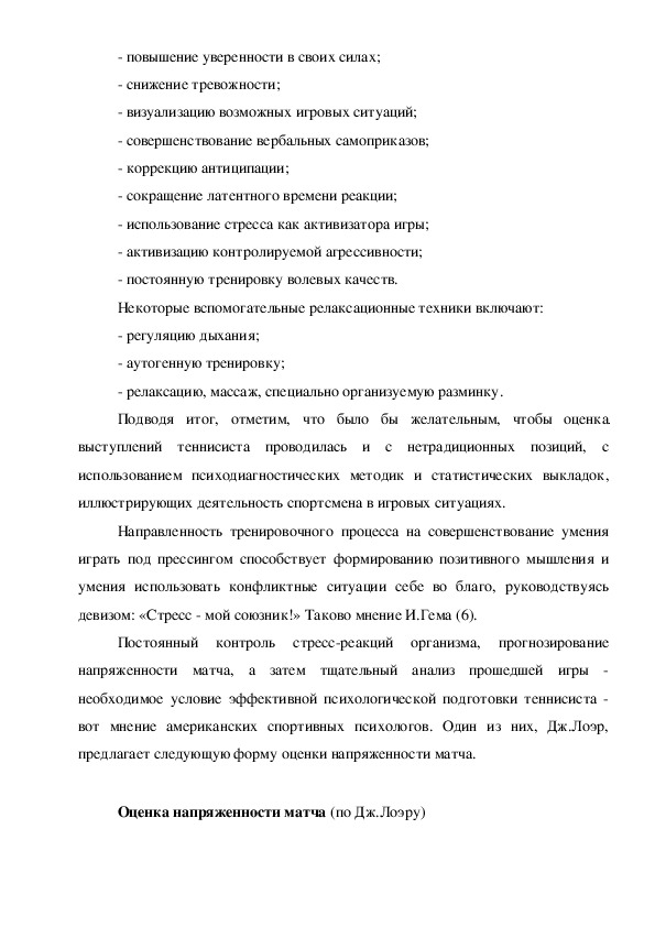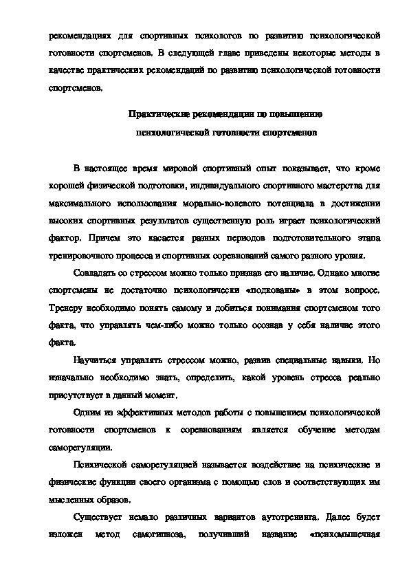психологической коррекции, примеры которых приведены нами в практическихрекомендациях для спортивных психологов по развитию психологической