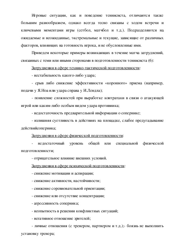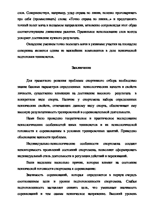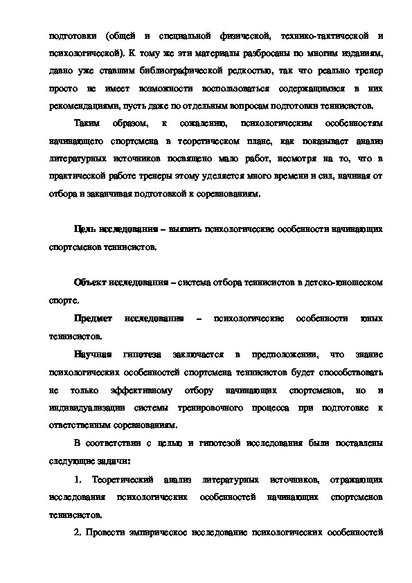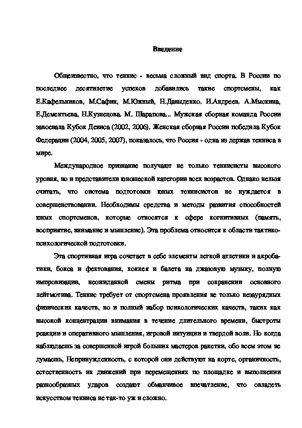 Международное признание получают не только теннисисты высокого уровня, но и представители юношеской категории всех возрастов. Однако нельзя считать, что система подготовки юных теннисистов не нуждается в совершенствовании. Необходимы средства и методы развития способностей юных спортсменов, которые относятся к сфере когнитивных (память, восприятие, внимание и мышление). Эта проблема относится к области тактико-психологической подготовки.