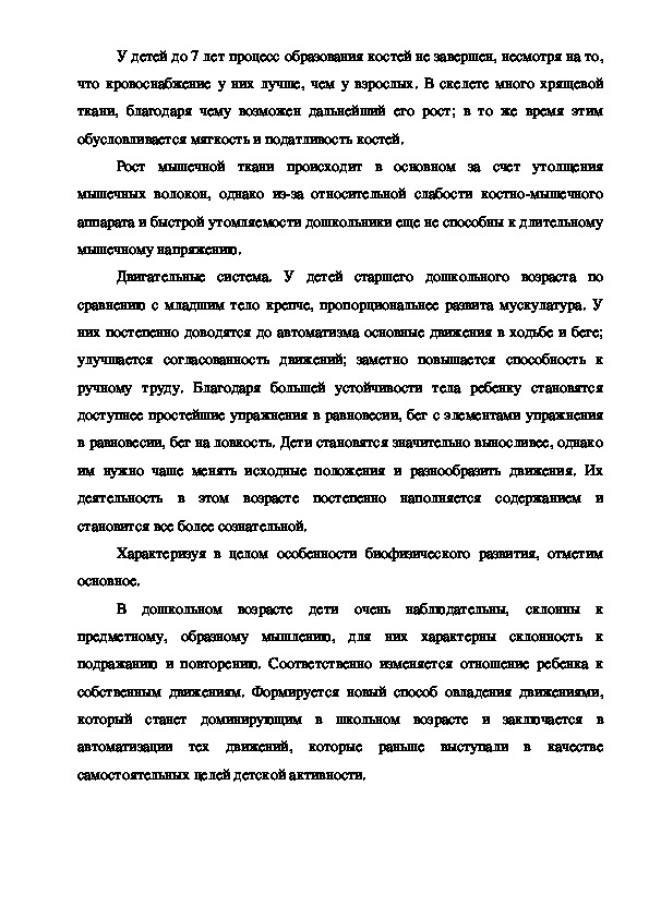 Особенности психофизического развития ребенка