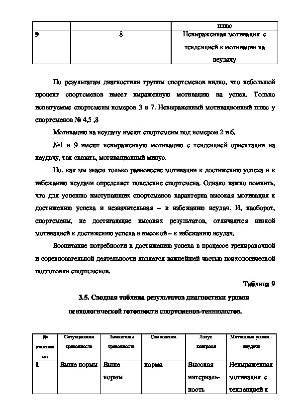 психологической готовности. Наиболее высокие результаты у спортсмена №7,