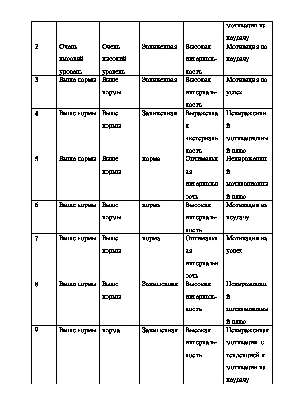 №1, №3, №4 и № 6. что оправдывается низкими результатами психологической