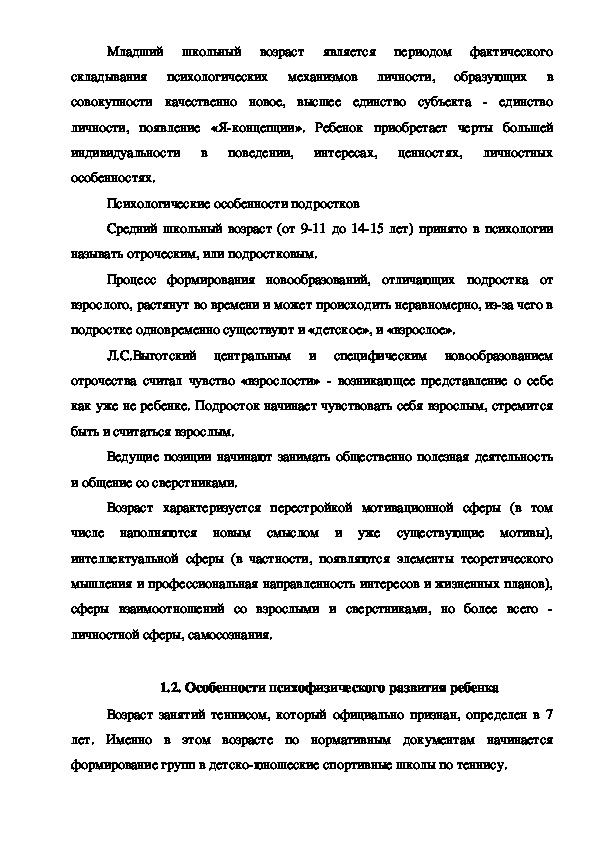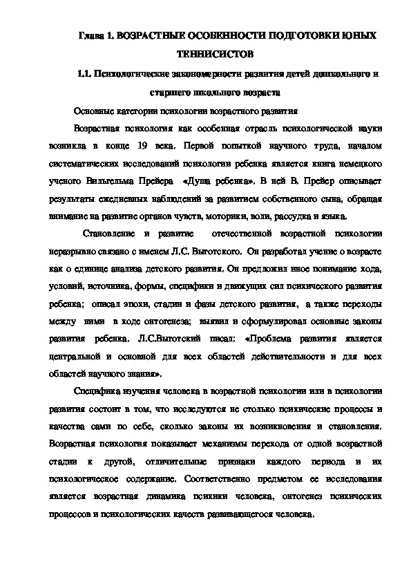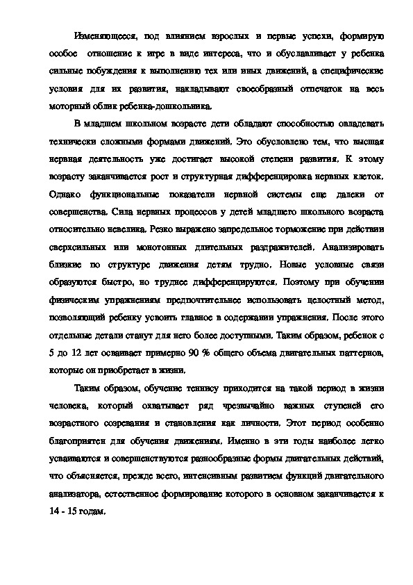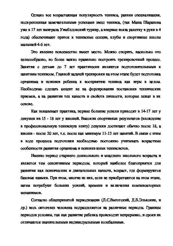 Глава 1. Возрастные особенности подготовки юных теннисистов