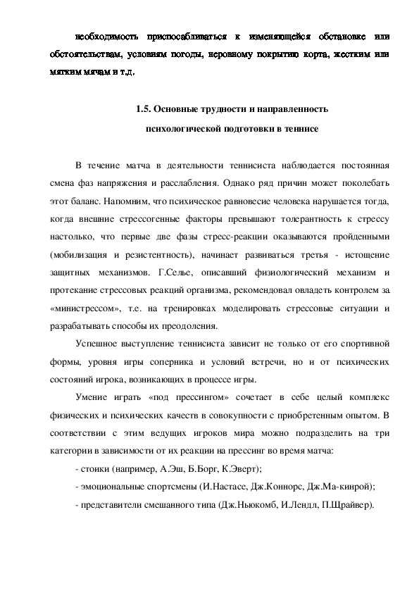 психологических особенностей спортсменовтеннисистов