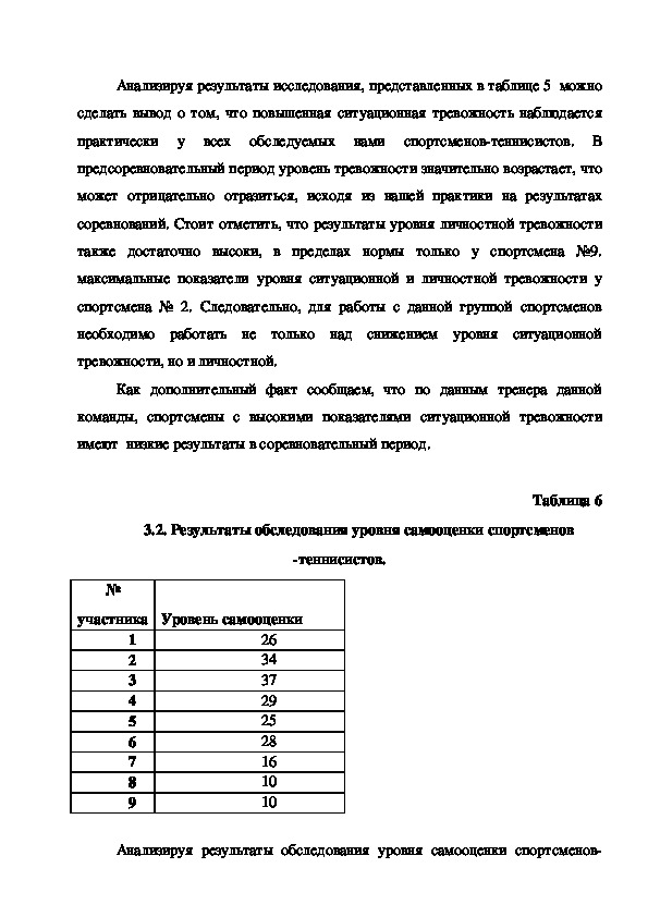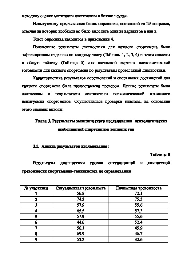личностной тревожности спортсменовтеннисистов