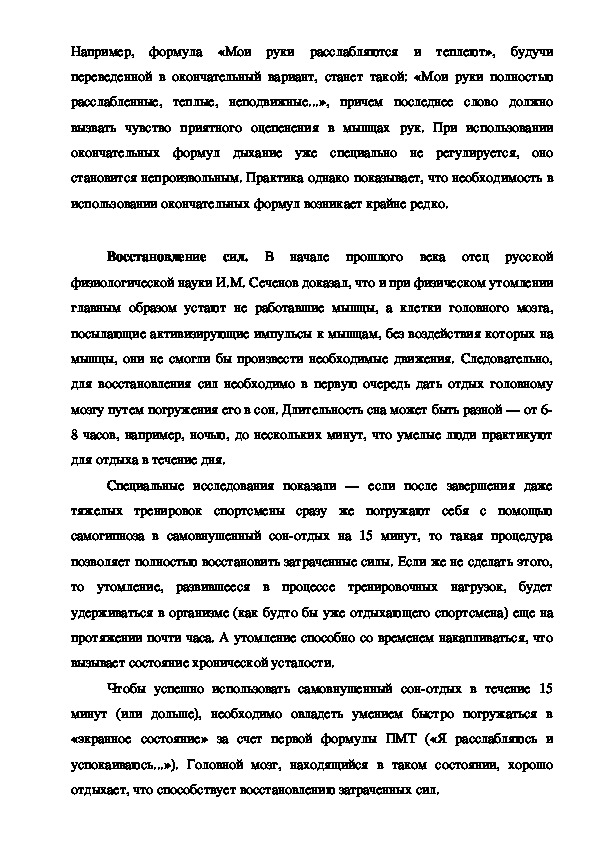 изложен метод самогипноза,