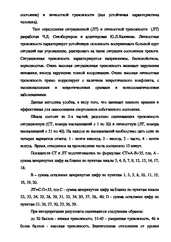 возраста такова, что тревожность (как личностная, так и ситуационная)