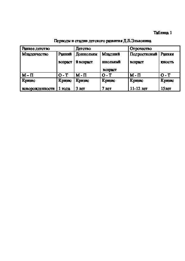 дошкольного и старшего школьного возраста