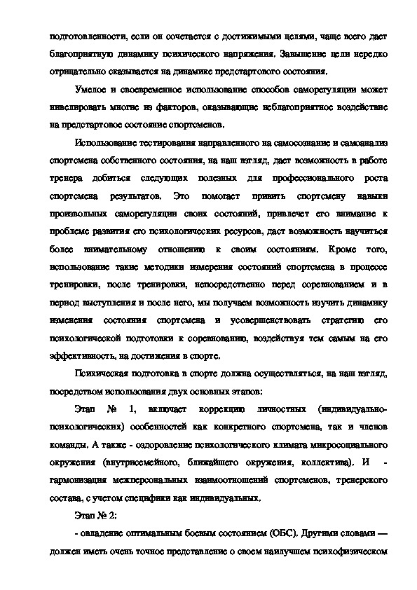 стратегию его психологической подготовки к соревнованию, воздействуя темсамым на его эффективность, на достижения в спорте.