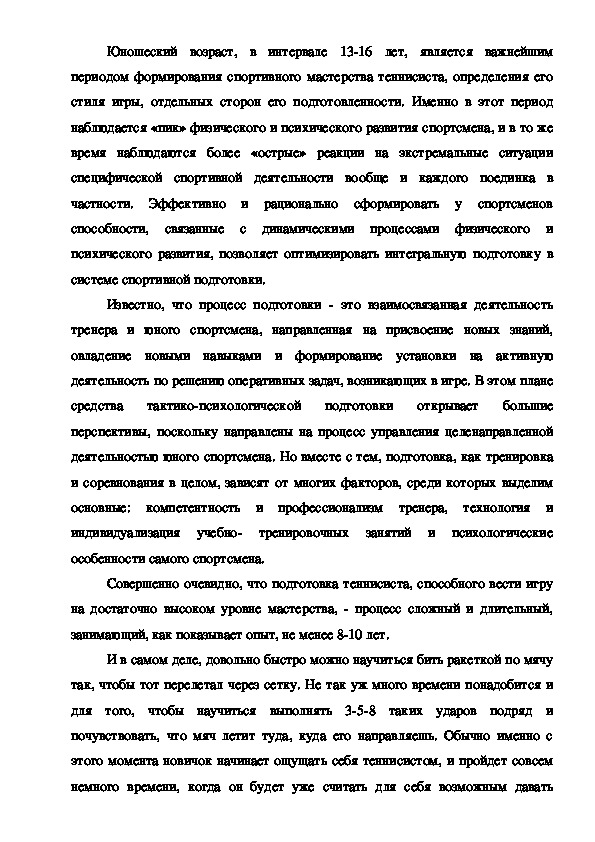 искусством тенниса не такто уж и сложно.Юношеский возраст, в интервале 1316 лет, является важнейшим